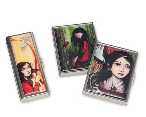 Rich with color and mystery, each personal case by artist Kelly Vivanco is like tiny painting, a window into another world, a slice of a dream you once had. Showcasing astonishing details and colors, each image features a mysterious heroine, her large eyes searching for answers...or does she know something you don't? Choose from Red Branch tampon case (left), Silent wallet case (Center) or Ghost Bird wallet case (right). The Silent wallet case and the Ghost Bird wallet case have been discontinued. When they sell out, they will no longer be available. We apologize for any inconvenience. SORRY, THE SILENT CASE IS NO LONGER AVAILABLE.